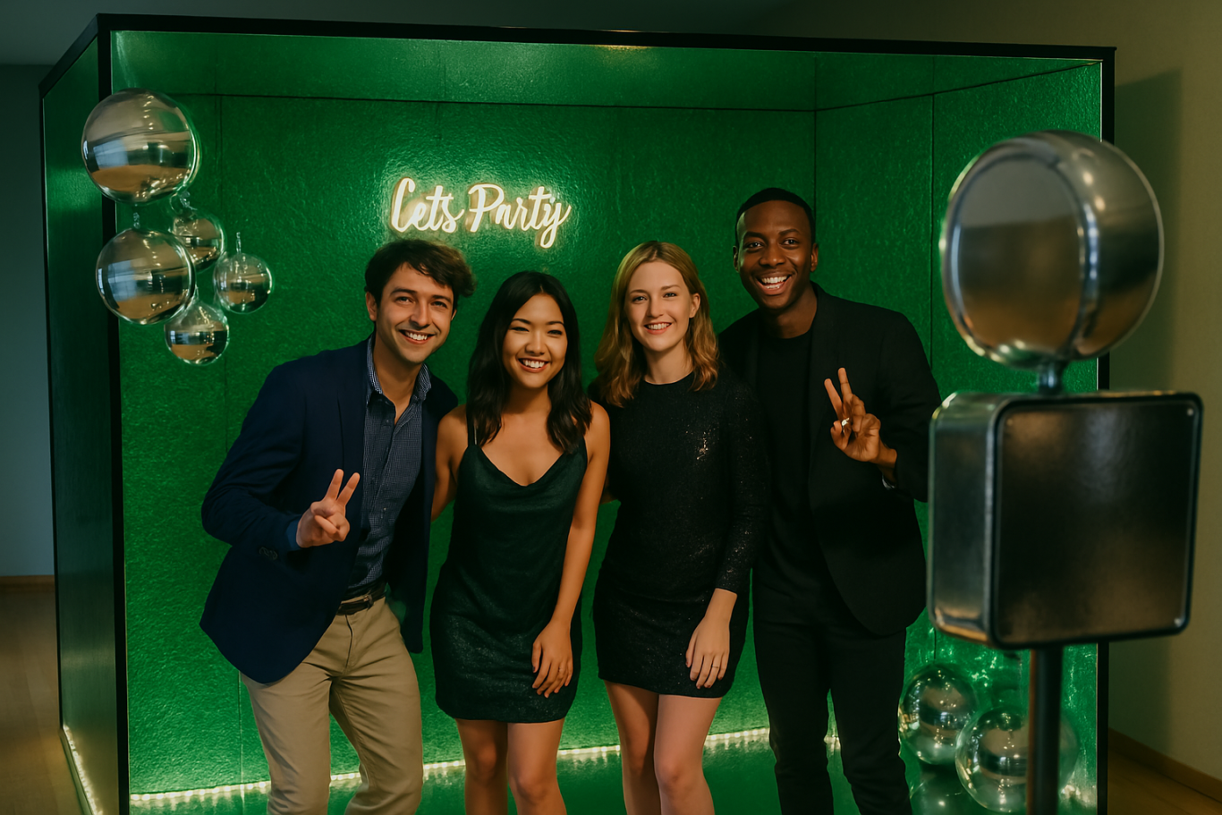 Geburtstag, Hochzeit oder Firmenfeier? Egal was ansteht, mit unserer verspiegelten Fotokulisse bringst du Stimmung, Spaß und jede Menge gute Vibes auf dein Event. Halt die besten Momente mit deinen Lieblingsmenschen fest, lach dich durch die Requisiten und sorg für Erinnerungen, die länger bleiben als der Kater danach. Die cheesy booth ist mehr als nur ein Fotokabine, sie ist Gesprächsstoff, Selfie-Magnet und einfach das perfekte Add-on für deine Feier.